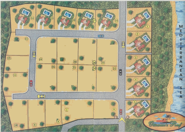 The plots are normally one donum, or 1,340 square metres. These are large plots by North Cyprus standards. However, if a customer wishes to have a Senator or Diplomat Villa at Ottoman's Reef, the plot sizes will be increased to some 2.5 donums and the number of properties reduced.